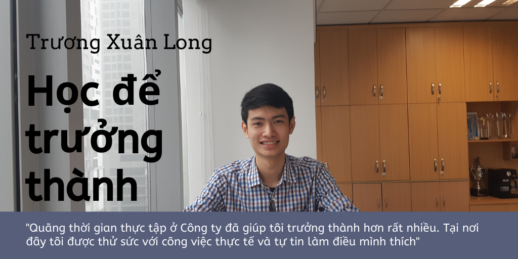 Một sinh viên năm cuối chuẩn bị ra trường chưa có kinh nghiệm làm việc, ngày tham gia phỏng vấn tôi lo lắng mình sẽ không được nhận nhưng anh trưởng phòng đã tin tưởng và tuyển dụng tôi vào làm việc tại Công ty. Thời gian đầu làm việc còn cực kì non kém, tôi được các anh chị tận tình chỉ bảo cho những điều dù là nhỏ nhất. Trước đây tôi thường nghe các câu chuyện về thực tập sinh như “ôi dào, dạy thực tập sinh làm gì bọn nó vụng lắm còn không biết gì, cho làm lại hỏng việc thì mình khổ ra”. Nhưng tại nơi đây, tôi được các anh chị trang bị cho các kiến thức, kỹ năng nền tảng và được tin cậy để tham gia vào các dự án khác nhau với mức độ, yêu cầu, cường độ khác nhau.