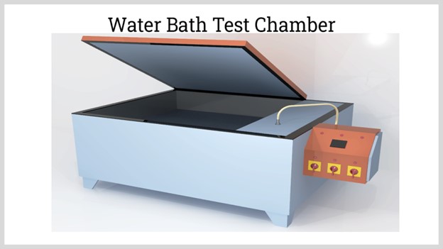 Water bath test chambers work on the same concept as a steam generator without an enclosed box. A small water bath is fitted in the mixing plenum with the heater. As air enters the assembly, it passes through the bath where it picks up the water vapors. This form of chamber provides a quick response since it uses a small amount of water and does not require the temperature of the water to be at the boiling point.
