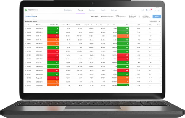 Có rất nhiều số liệu có sẵn trong Báo cáo sản xuất MachineMetrics. Các nhà quản lý cải tiến liên tục, giám sát xưởng sản xuất và đội ngũ kỹ sư có thể phân tích báo cáo sản xuất để hiểu rõ hơn về hoạt động của một nhà máy. Khi nói đến việc tối ưu hóa hiệu quả của bạn, có một vài chỉ số về hiệu quả sản xuất và thời gian thực hiện công việc mà bạn muốn đảm bảo có trong báo cáo: