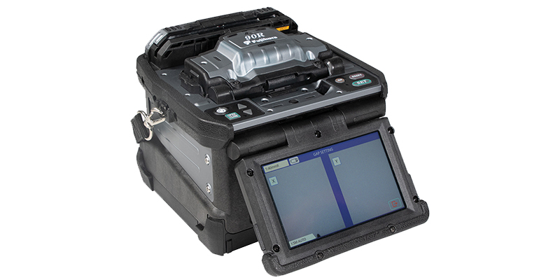 The 90R12 is a mass fusion splicer capable of splicing up to 12 fiber ribbon cables simultaneously. In previous mass fusion splicer models, the v-grooves could become dirty over time due to debris and glass deposits from splicing accumulating in the v-grooves. Which in turn, could lead to fibre offsets and high losses if they were not regularly cleaned which added to the overall process time. The 90R12 comes with a first of its kind, innovative user replaceable V-groove assembly which makes this issue a thing of the past and is supplied as standard equipment with the 90R12 kit. This new V-groove assembly can be quickly and easily fitted in the field, minimizing downtime and maximising productivity. In addition, the new V-groove design enables splicing of both conventional type 12-fiber encapsulated ribbon and SWR (Spider Web Ribbon) whilst also accommodating 250um and 200um pitch fibers. The 90R12 can also splice single fibers if required. also making use of Active Blade Management Technology, which now can connect to two CT50 cleavers simultaneously.