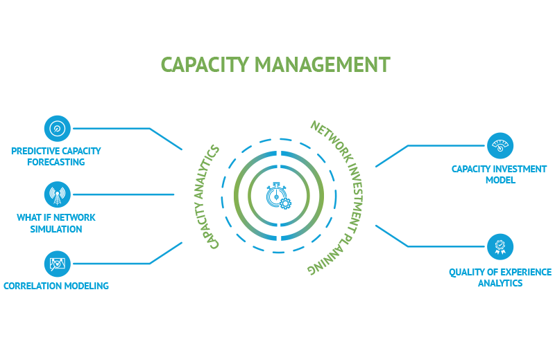ROC™ Capacity Management provides proactive, actionable business intelligence to make appropriate investments in maximizing network capacity. Our solution gleans insights from network capacity trends, correlates end-to-end capacity issues, simulates congestion points due to external events, and forecasts lead time for capacity exhaustion scenarios.