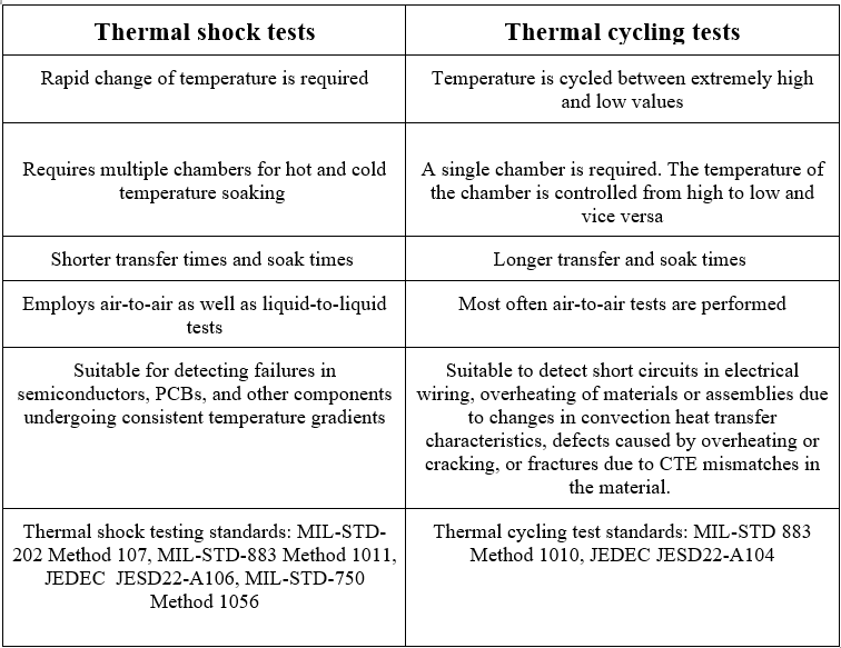Let’s compare thermal shock vs. thermal cycling tests.