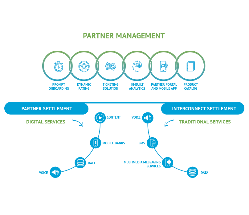 Our solution offers a rounded view of your partner ecosystem by providing a nuanced profile of partner agreements based on data such as revenue sharing and margins. Our solution helps in swift partner onboarding, partner self-care, end-to-end revenue visibility and communication between you and your partners. It helps you manage diverse revenue streams while helping you launch high-value, high margin services in collaboration with partners.